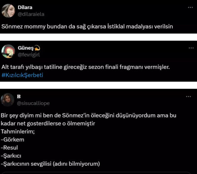Kızılcık Şerbeti, yeni sezonla birlikte her hafta adından söz ettirmeyi başarıyor. Sıla Türkoğlu, Evrim Alasya, Sibel Taşçıoğlu, Ahmet Mümtaz Taylan ve Doğukan Güngör'ün başrolü paylaştığı Kızılcık Şerbeti yeni bölümleriyle sosyal medyada gündem oluyor.