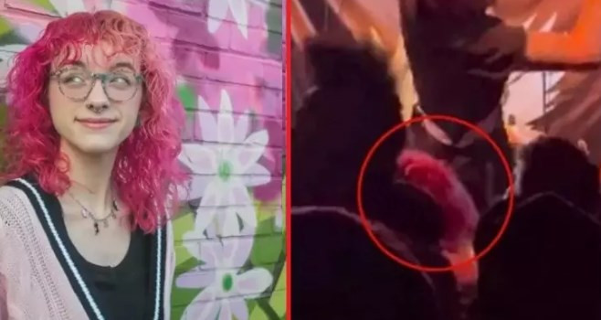 Sosyal medyada yer alan görüntülerde konserde epey eğlendiği görülen genç kız grubun solistinin kalabalığın üzerine atlaması ile birlikte hayatının şokunu yaşadı.
