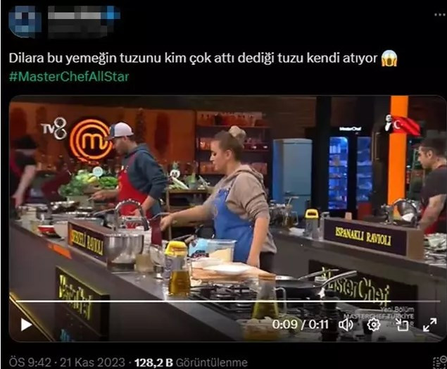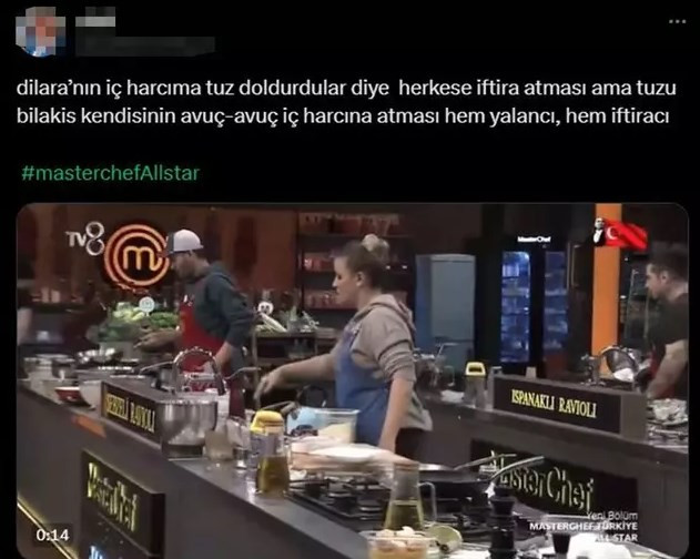 MasterChef All Star bomba gibi bir bölümle ekrana geliyor. Yemeğe fazla tuz atıldığını ifade eden Dilara, yaşadığı duruma tepki gösterdi. Barbaros "Benim önümde Esra vardı!" dedi. Esra açıklamasında "Ben 'Tuz atılmış mı, atılmamış mı?' diye hemen hemen suya baktım. Hayır tuz atılmamış!" ifadelerini kullandı. Esra'ya yanıt Danilo Şef'ten geldi. İtalyan şef "Sen attın o zaman?" diye sordu. Esra ise "Hayır" yanıtını vererek kendini savundu. Sonrasında tuzu atan kişiyi belirlemek için yarışmacılara söz hakkı tanındı.