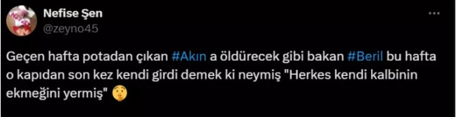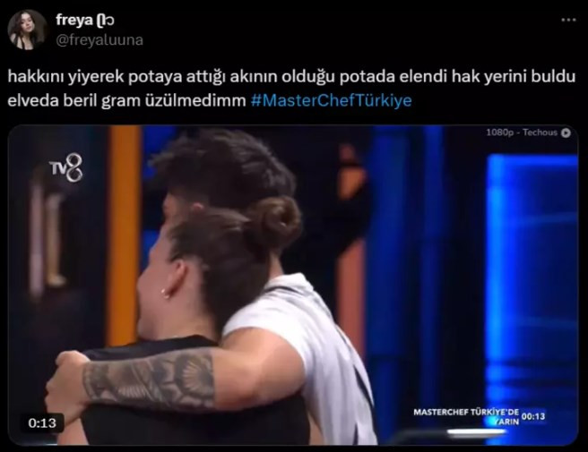 "Buradan ayrılırken keşke dediğim ilk şey psikolojimi iyi tutmaktı ama yapamadım. Çok güzel arkadaşlıklar kurdum ve enerjimle iz bıraktım. Benim için yolun sonu burada noktalandı." sözleriyle veda eden Beril'in elenmesinin ardından sosyal medyada birçok kullanıcı adaletin yerini bulduğunu söyledi.
