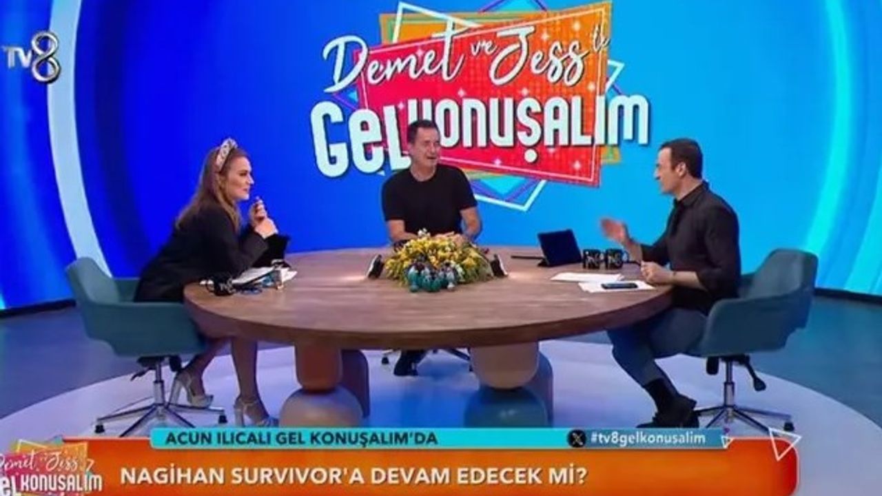 Acun Ilıcalı Demet Akalın'ın sorusuna "Nagihan'ın durumu şöyle seneye kalmasından yanayım, yani ayrılması lazım aslında ama Nagihan da şimdi... Kalıcı hazar olmaz ama bu performansıyla da Survivor filan kazanamaz. Nagihan buna rağmen devam edeceğim diyerek gözü döndüyse o hakkını da elinden almak istemiyorum" yanıtını verdi.