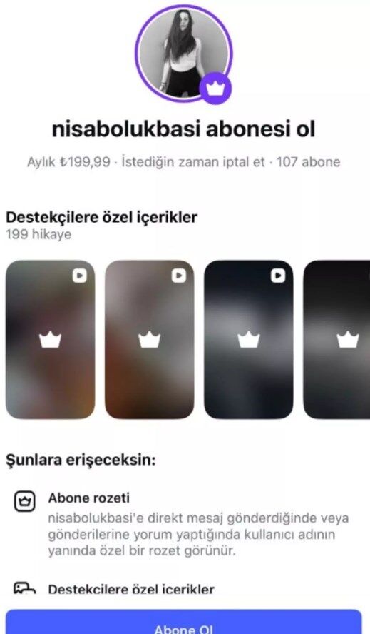 Abonelere özel paylaşımlar yapan Nisa Bölükbaşı, abonelik sisteminden henüz 24 saat olmadan 21.400 TL kazandı.