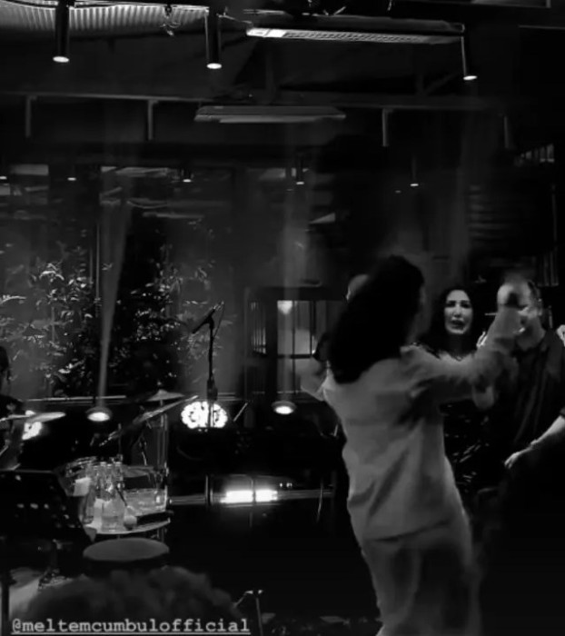 Partiye Meltem Cumbul'un dansı damga vurdu. Arkadaşının doğum gününe beyazlar içinde katılan Cumbul kendini müziğin ritmine kaptırdı ve adeta kendinden geçti.