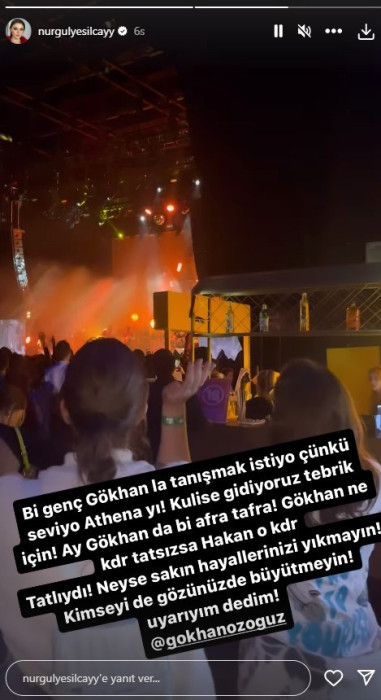 Instagram hesabından Gökhan Özoğuz'u etiketleyerek tepki gösteren Nurgül Yeşilçay, "Bir genç Gökhan'la tanışmak istiyor çünkü seviyor Athena'yı.