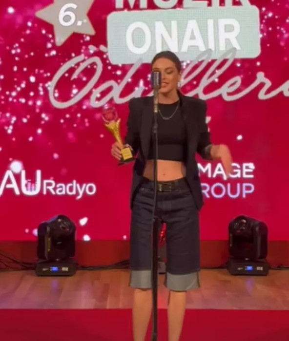 BAU Radyo MüzikOnAir ödül gecesinde ödül alan güzel oyuncu tarzıyla eleştirilerin hedefi oldu. Kapri pantolonu ve büstiyeriyle geceye katılan Sezen kombinini siyah ceketi ile tamamladı.