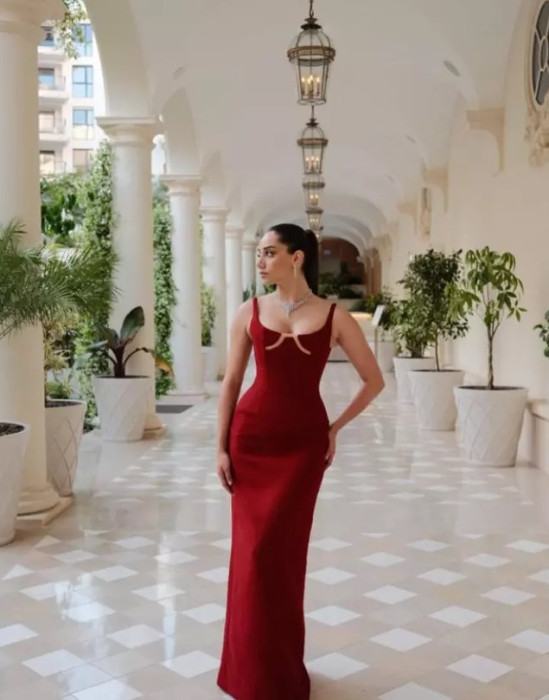 Özacar, Cannes'ta kırmızı uzun elbisesi ile boy gösterdi. Ünlü isim birbirinden iddialı pozlarını sosyal medya hesabından takipçileri ile paylaştı.