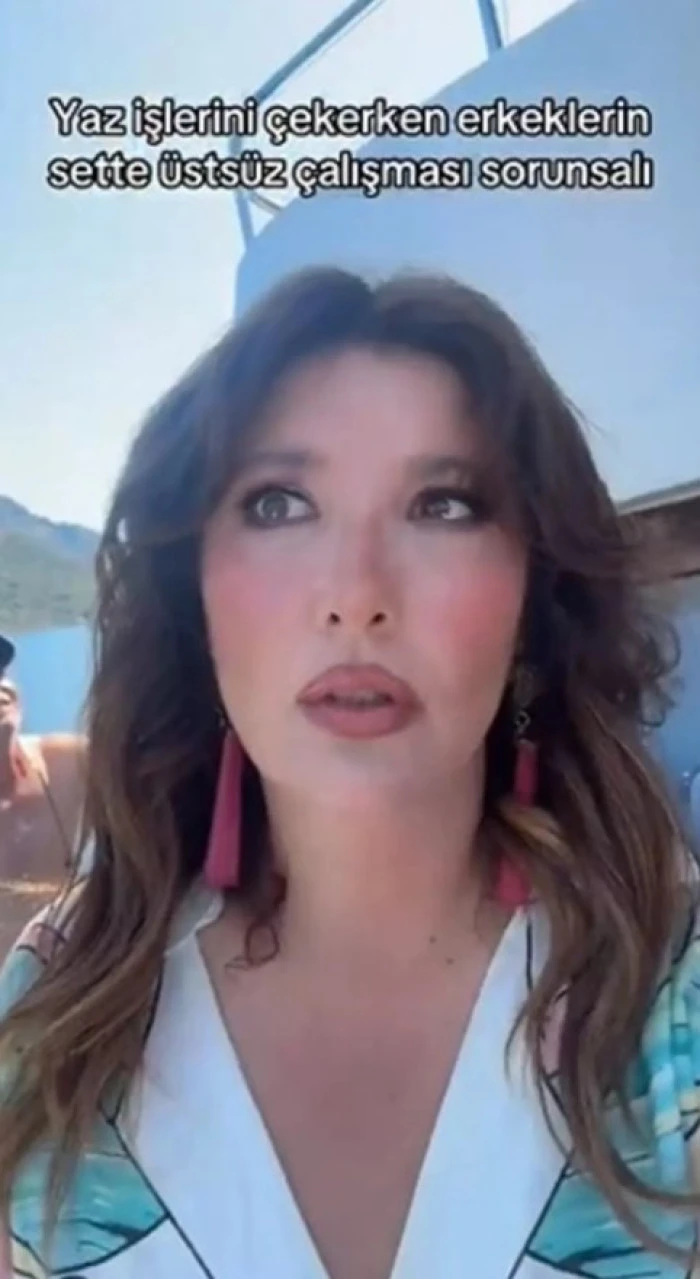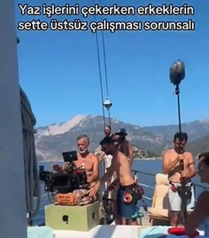 Ünlü isim paylaşımına; 'Yaz işlerini çekerken erkeklerin sette üstsüz çalışması sorunsalı' ifadelerini not düştü.