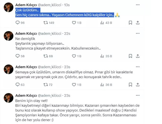 Kılıçcı, Sema'nın diskalifiye olmasından sonra ise şu paylaşımı yaptı: