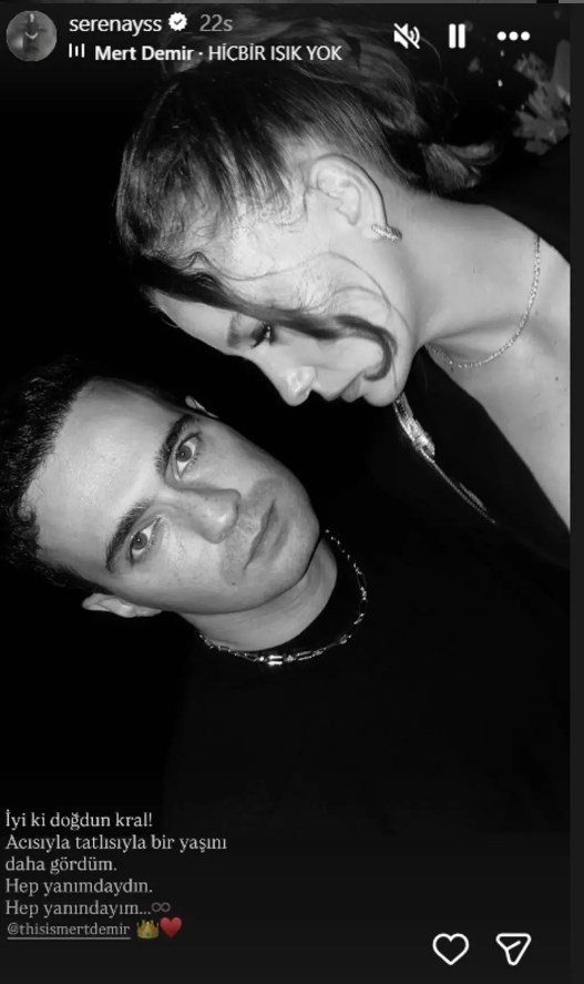 Sosyal medya paylaşımlarıyla dikkat çeken Mert Demir şimdi de yeni yaşını kutladı. Serenay Sarıkaya sevgilisinin doğum gününde aşka geldi.