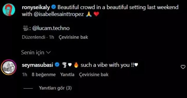 Şeyma Subaşı'nın Rony Seikaly'nin paylaşımlarına yaptığı kalp emojisi yorumlar da sosyal medyada gündemde.