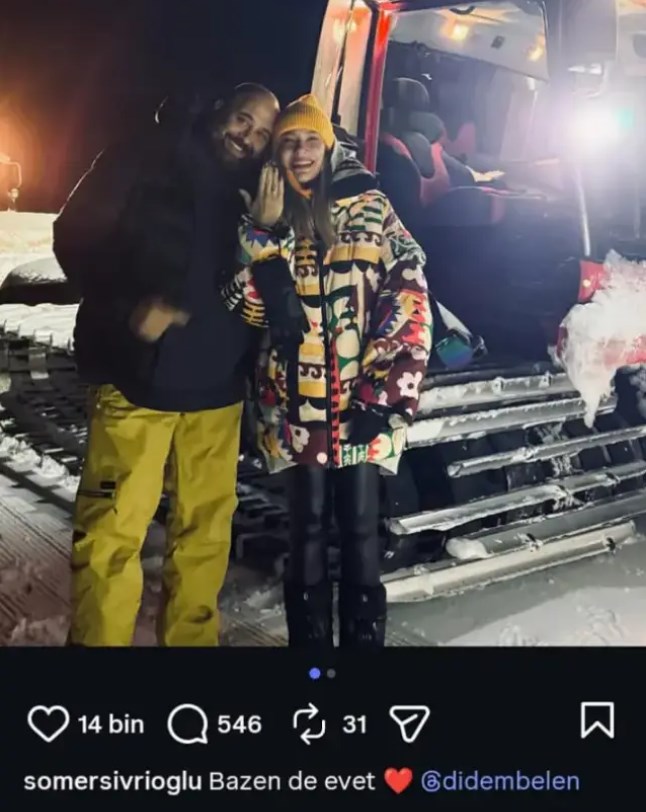 54 yaşındaki Sivrioğlu, karlar arasında gerçekleşen evlilik teklifini sosyal medya hesabından "Bazen de evet" notuyla paylaştı. Çiftin "evet" yanıtının ardından verdiği poz kısa sürede büyük beğeni topladı. İkilinin mutluluğu, takipçileri tarafından çok sayıda tebrik mesajıyla karşılandı.