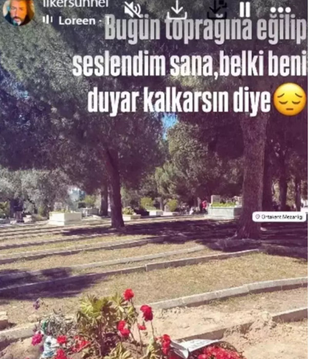 Eşi Tanyeli'nin mezarlığına giden Sünneli yaptığı paylaşımda 'Bugün toprağına eğilip seslendim sana, belki duyar kalkarsın diye' notunu düştü.