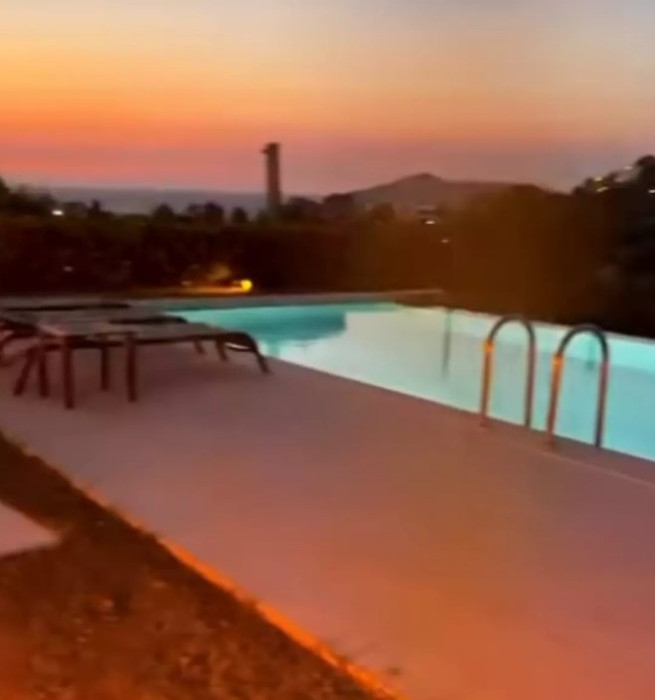 Ceylan, Bodrum'daki evinin manzarasını paylaştı. Evin bahçesinde bulunan kocaman havuz dikkat çekti.