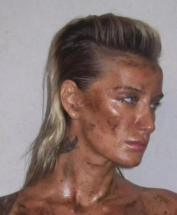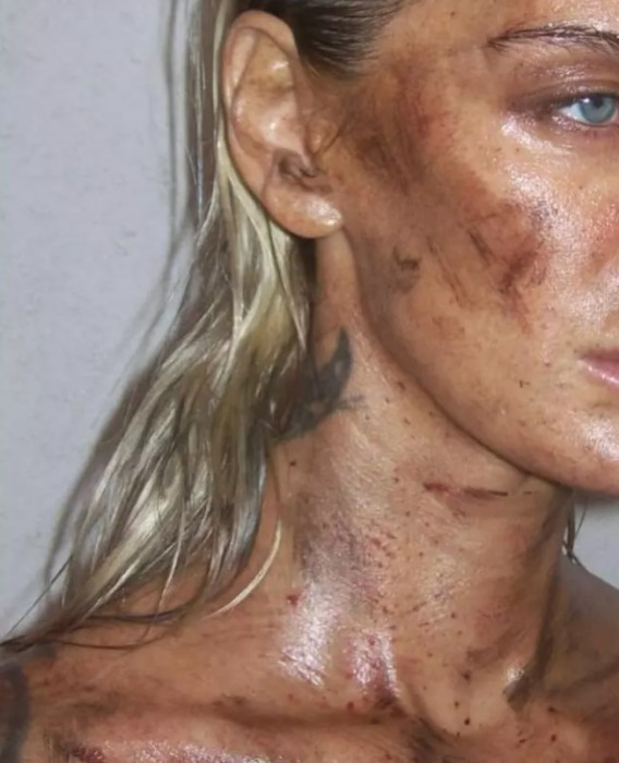 Daha önce de birkaç kez üstsüz pozlar veren Didem Soydan, bir çekim için kamera karşısına geçti. Çekim için yüzüne makyajla yara izleri verilen Didem Soydan, sette göğüs uçlarını elleriyle kapatarak poz verdi.