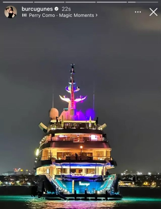 Snob Magazin'in haberine göre değerinin 500 milyon doların üzerinde olduğu tahmin edilen ultra lüks yata giden Burcu Güneş şarkılarını söyledi. O görüntülerde davetlilerin Güneş'i hayranlıkla dinlemesi dikkat çekti.