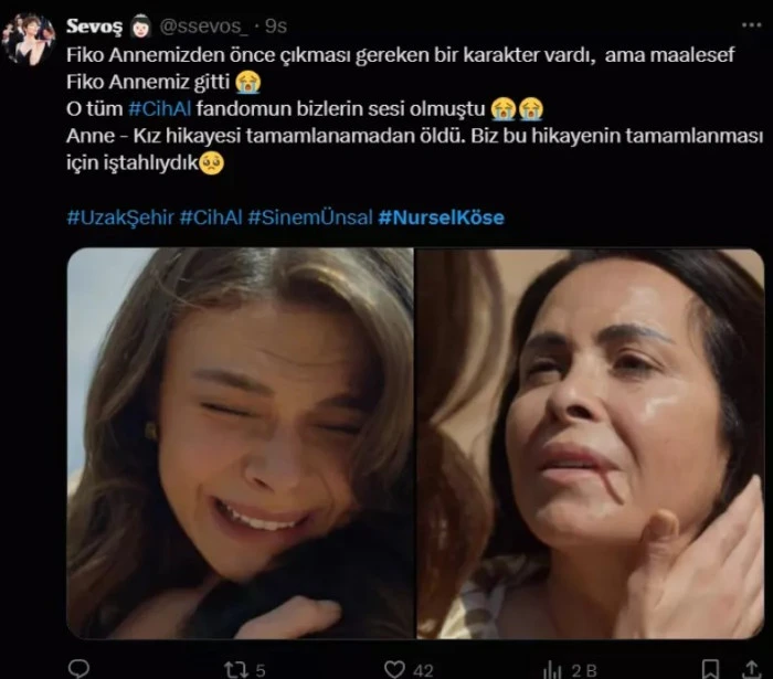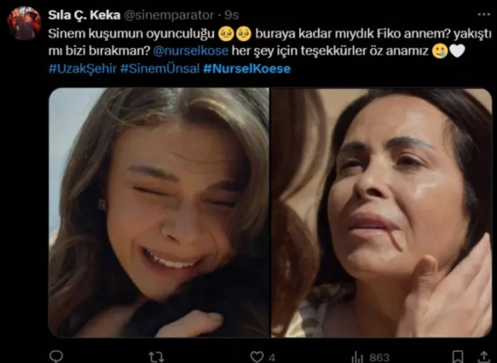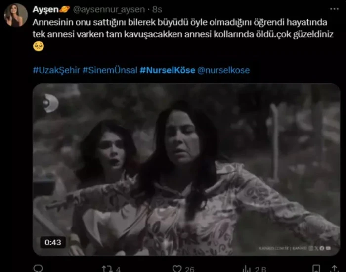Öte yandan Uzak Şehir son bölümde Fikriye'nin vurulduğu ve Alya'nın annesine sarıldığı anlar seyircinin yüreğini dağladı. Seyirci iki oyuncunun başarısına beğeni yağdırırken şu paylaşımlar öne çıktı.