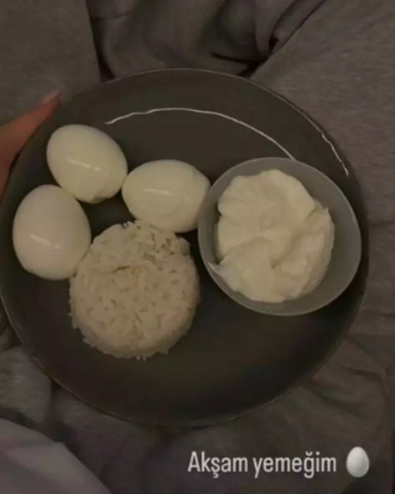 Özilhan'ın haşlanmış yumurta, pilav ve yoğurttan oluşan akşam yemeği menüsünü görenler şaştı kaldı. Güzel isme "Paran varsın ama açsın", "İmkansız 3'lü", "Yazık ya 34 beden olmak için değer mi?" yorumları yağdı.
