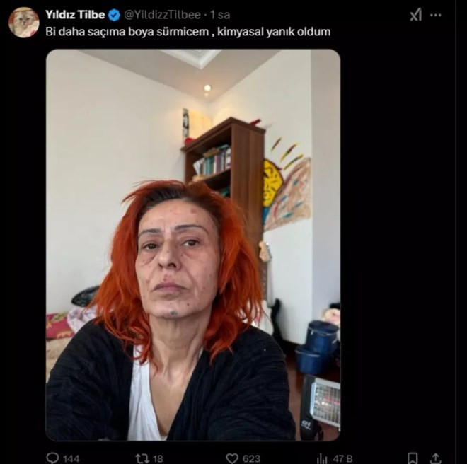 Geçtiğimiz günlerde imaj yenileyip saçlarını kızıla boyatan Yıldız Tilbe 'Kimyasal yanık oldum. Ve son halim' notu ile yüzündeki yanıkları gösterdi.