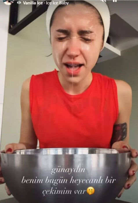 Şarkıcının son paylaşımı da çok konuşuldu. 2,1 milyon takipçisi bulunan Instagram hesabından bu kez içi buz dolu kaseye yüzünü daldırdığı anları paylaştı.