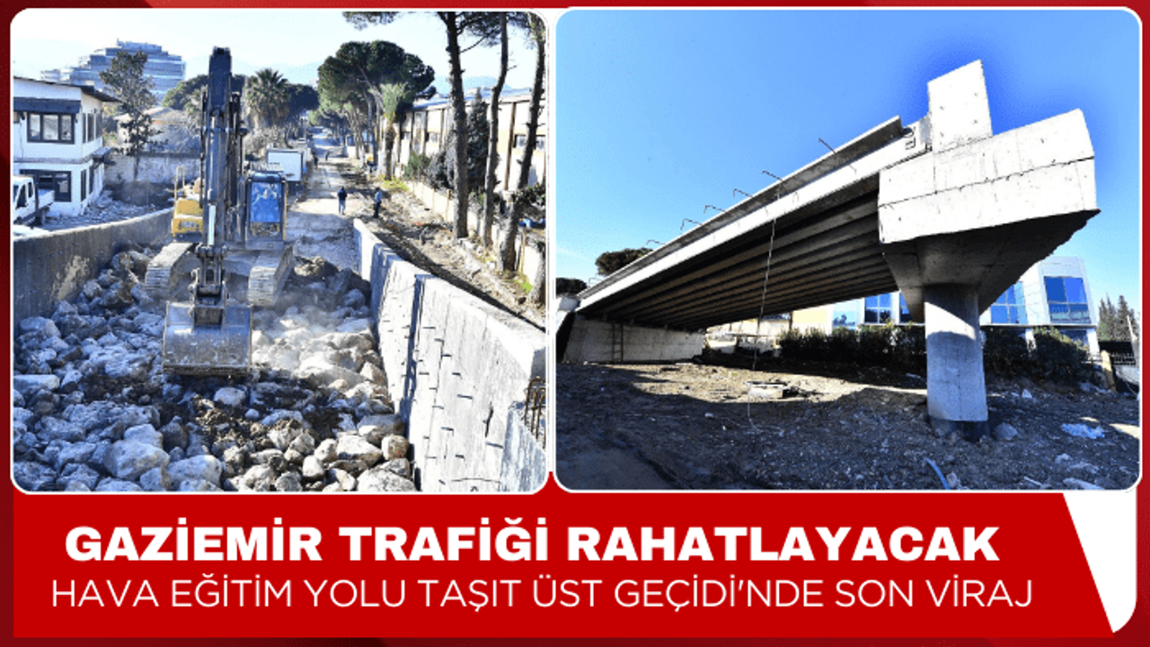 İzmir Büyükşehir Belediye Başkanı Dr. Cemil Tugay'ın kent trafiğine nefes aldıracak ulaşım projeleri tek tek hayata geçiriliyor. Trafik yoğunluğunu azaltmak, kesintisiz ve güvenli trafik akışı sağlamak için pek çok noktada çalışan İzmir Büyükşehir Belediyesi, Gaziemir Hava Eğitim Yolu üzerindeki taşıt üst geçidini de ocak ayı sonunda hizmete alacak. Adnan Menderes Havalimanı, Ege Serbest Bölgesi ve önemli alışveriş merkezlerinin ulaşım aksı üzerindeki Gaziemir'de ulaşımı rahatlatacak üst geçit, Akçay Caddesi'nden Sarnıç'a bağlantı sağlayarak alternatif bir ulaşım yolu oluşturacak. Yaklaşık 50 milyon liraya mal olacak taşıt üst geçidi yaklaşım rampaları dahil 235 metre uzunluğunda ve 6,5 metre yükseklikte.