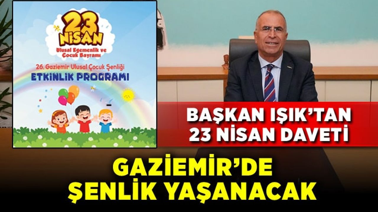 Mustafa Kemal Atatürk'ün çocuklara armağanı olan 23 Nisan Ulusal Egemenlik ve Çocuk Bayramı'nı, çocuklar için konserlerin, müzikallerin ve çeşitli gösterilerin yer aldığı 26. Gaziemir Ulusal Çocuk Şenliği'yle kutlayacaklarını ifade eden Belediye Başkanı Ünal Işık, "Her gün kentimizin farklı bir bölgesinde düzenleyeceğimiz etkinliklerde, çocuklarımız doyasıya eğlenerek bayramlarını kutlayacak. 23 Nisan günü düzenleyeceğimiz kortejde, ay yıldızlı bayraklarımızla yürüyerek ilçemizin sokaklarını gelincik tarlasına dönüştüreceğiz. Festival Alanı'nda düzenleyeceğimiz Yeni Türkü konseriyle de bayram coşkusunu zirveye taşıyacağız. Çocuklarımız başta olmak üzere tüm yurttaşlarımızı bayram coşkumuza ortak olmaya davet ediyorum" diye konuştu.