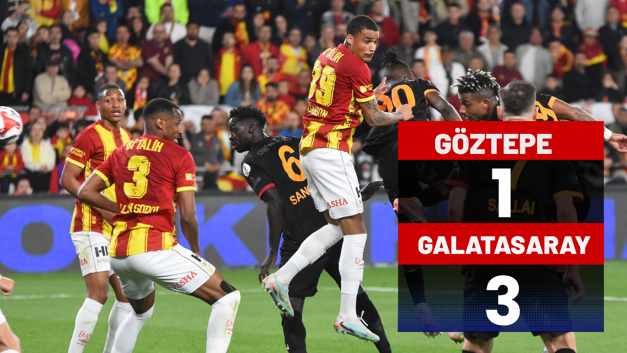 Isonem Park Gürsel Aksel Stadı’nda oynanan karşılaşmada konuk ekibin gollerini 5’inci dakikada Barış Alper, 19’uncu dakikada İlkay ve 75’inci dakikada Lemina attı. Göztepe’nin tek golü 50’de Juan’dan geldi. Sahaya Trabzonspor’a 2-1 kaybedilen maçın ilk 11’inden 6 değişiklik yaparak çıkan Galatasaray kritik 3 puanla rakipleri Fenerbahçe ve Trabzon’la arasındaki puan farkını yeniden 4’e çıkardı. Sarı-kırmızılı ekip ligde bitime 6 maç kala puanını 67 yaptı. Göztepe ise 46 puanda kaldı.