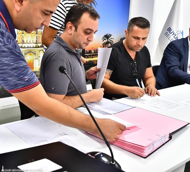İhale sonunda S plaka kiralamaya hak kazanan ve ihale gereklerini yerine getiren taşımacılarla “Kiralık Servis Aracı Plaka Sözleşmesi” imzalanarak 124 adet servis plakası verildi. Çetin Emeç Toplantı Salonu’nda düzenlenen protokole İzmir Büyükşehir Belediyesi Genel Sekreteri Barış Karcı ve İzmir Büyükşehir Belediyesi Ulaşım Dairesi Başkanı Kadir Efe Oruç katıldı.