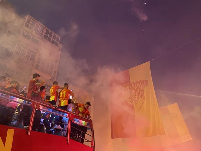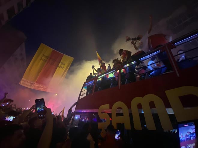 Gürsel Aksel Stadyumu'nda kupasını havaya kaldıran sarı-kırmızılılar ardından üstü açık otobüsle şehir turuna çıktı. On binlerce futbolsever caddelerde takımı büyük coşkuyla karşıladı.