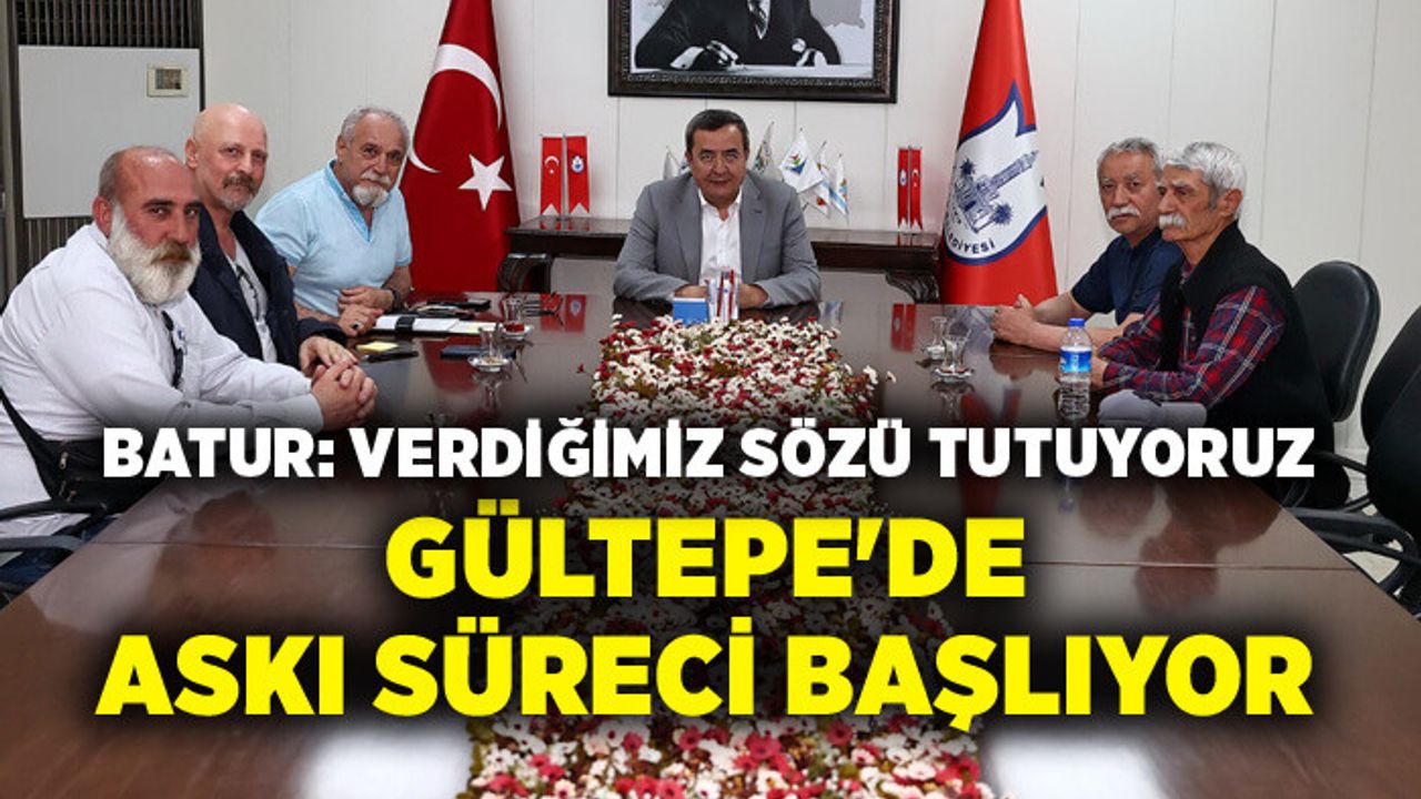 Başkan Batur, kendisini ziyaret eden dernek yöneticilerine Gültepe'nin kentsel dönüşümü için verdikleri destek dolayısıyla teşekkürlerini etti. Gültepe'de kentsel dönüşümün gerçekleşmesi için ellerini taşın altına koyduklarını bir kez daha vurgulayan Başka Batur, "Derneğimizin yasal süreçte verdiği desteğe ve kentsel yenileme sürecinde vereceklerini beyan ettikleri desteğe çok teşekkür ederim. Kentsel dönüşümü birlikte başaracağız. İki meclisten de oybirliğiyle geçen, odalar, muhtarlar, sivil toplum bilgilendirilerek işleyen bir süreç ama bizden kaynaklanmayan gecikmeler yaşandı. Tekrar tekrar anlatmaya gerek yok, yaşanan gecikmelerin nedenlerini biliyorsunuz. Çok zaman kaybettik. Artık kaybedecek bir dakikamız bile yok" diye konuştu.