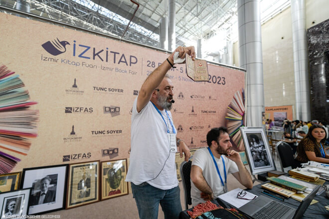 İzmir Büyükşehir Belediyesi ev sahipliğinde İZFAŞ ve SNS Fuarcılık tarafından Fuar İzmir’de düzenlenen İZKİTAP – İzmir Kitap Fuarı; imza etkinlikleri ve söyleşilerin yanı sıra müzayedelere de ev sahipliği yaptı. 100. Yıl Özel Müzayedesi, Hermes Sahaf Kurucusu Ümit Nar yönetiminde gerçekleştirildi. Müzayedede aralarında, Mustafa Kemal Atatürk’ün ıslak imzasını taşıyan Mebus Defteri, Nazım Hikmet’in Bursa Cezaevi’nde eşi Piraye için yaptığı “Nazım, Bursa, Zevcem Pirayem” yazılı ahşap kalemlik, 1954 yılına ait “İzmir'de Alınteri, Boyozcu, Kordon 1954” ıslak imzalı Ara Güler kaşeli fotoğraf, İzmir’in işgali sırasında ilk kurşunu sıkarak direnişi başlatan Gazeteci Hasan Tahsin’in de yer aldığı gazeteci, yazar, milletvekili Ahmed Rasim’e ithaflı ıslak imzalı fotoğraf, Cemal Süreya, Behçet Necatigil, Uğur Mumcu gibi değerli yazarların imzalı kitaplarının da olduğu birçok özel parça yer aldı.