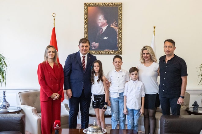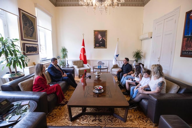 Makamında eşi Öznur Tugay ile birlikte baba Onur Nizamoğlu, anne Ebru Nizamoğlu ve Alya Ada'nın kardeşleri Kemal Deniz ve Mustafa Güneş'i ağırlayan Başkan Dr. Cemil Tugay aileyle sohbet etti.