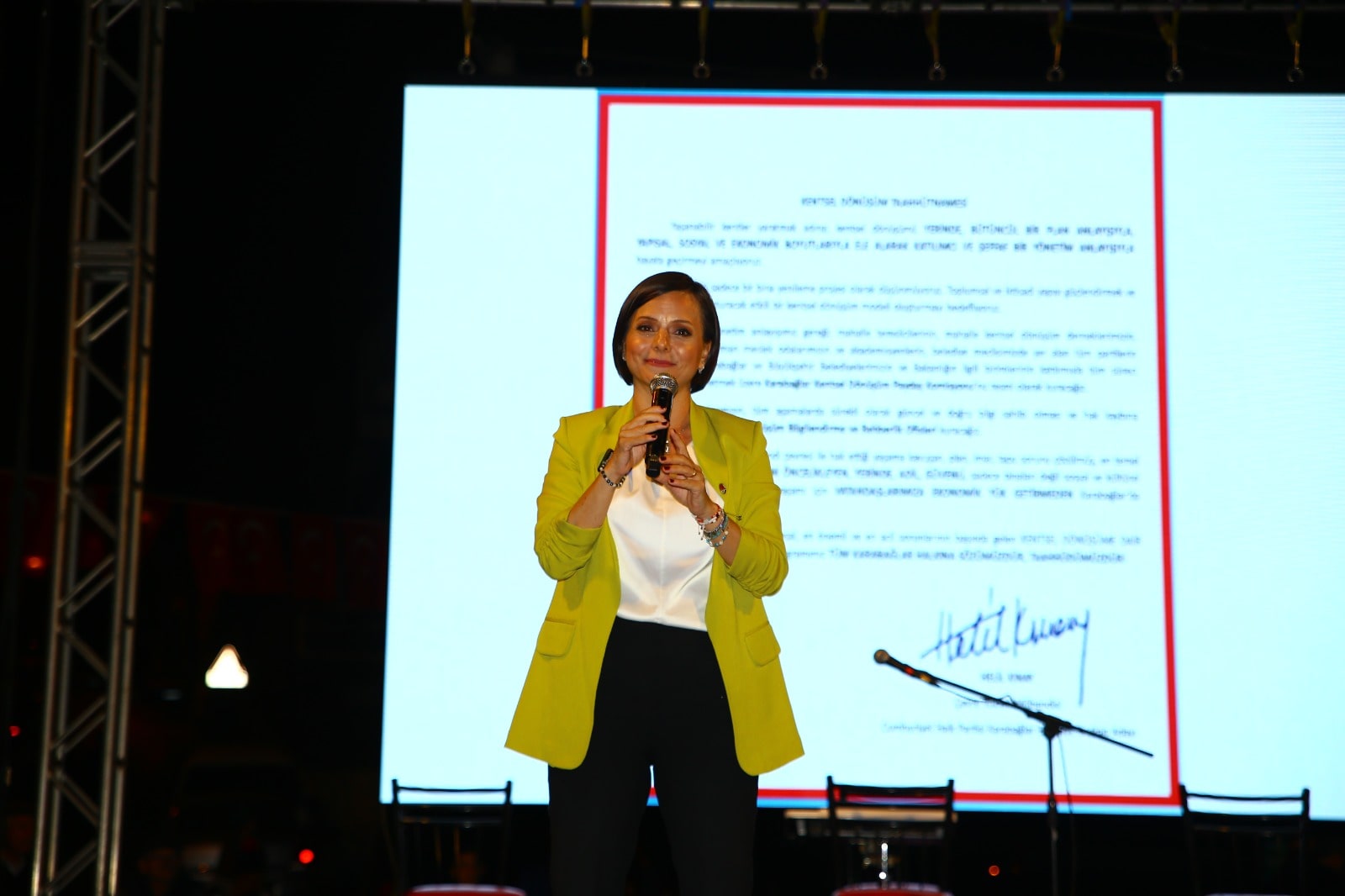 “Karabağlar 15 yıldır Cumhuriyet Halk Partisi ile beraber yönetilen bir belediyemiz. Dolayısıyla burada gerçekten yokluk içerisinde sınırları çizilen bir belediyede, kendi kurumsal çalışmalarını yürütmesi anlamında bir taraftan da 58 mahalledeki hem belediye hizmetleri hem de yokluğa destek vermek anlamında çok ciddi emekler harcamış. Ben bunların hepsine teşekkür ederek başladım ve adaylığım açıklandığı ilk andan itibaren de teamüller gereği il başkanımız, ilçe başkanımız ve belediye başkanımızla görüşerek bu yola çıktım. Tabii bu bir bayrak yarışı partimizin yaptığı değerlendirmeler var. Bu sürecin içerisinde belediye başkanımızın değerlendirmelerini de kendisine bırakıyorum. Çünkü bizler partimizin hak, emek, adalet dediği bir süreçte özellikle AKP’ye karşı AKP’nin bu yoksullaştıran, ötekileştiren, düşmanlaştıran politikalarına karşı ülkemizin geleceğini savunduğumuz bir süreçte herkesi bu mücadelenin içerisinde görmek isterdik. Herkesin amasız, keşkesiz, fakatsız, kendi kişisel düşüncelerinden ziyade ülkeye dair kente dair sözlerini ortada görmek isterdik. Ben bu konudaki değerlendirmeyi de vatandaşlarımızın en doğru şekilde yapacağına inanıyorum. Ben bu noktada tüm belediye başkanlarımıza verdikleri hizmetler için teşekkür ediyorum. Karabağlar’a geldiğinde çok güçlüyüm demiştim ve Karabağlar’da her gün de o gücümüzü büyüterek gittik. Çünkü Karabağlar'da biz varız.”