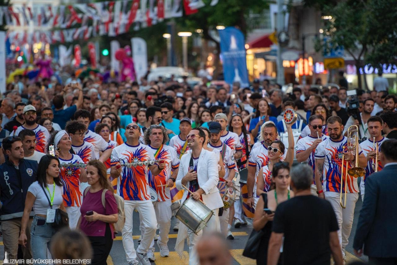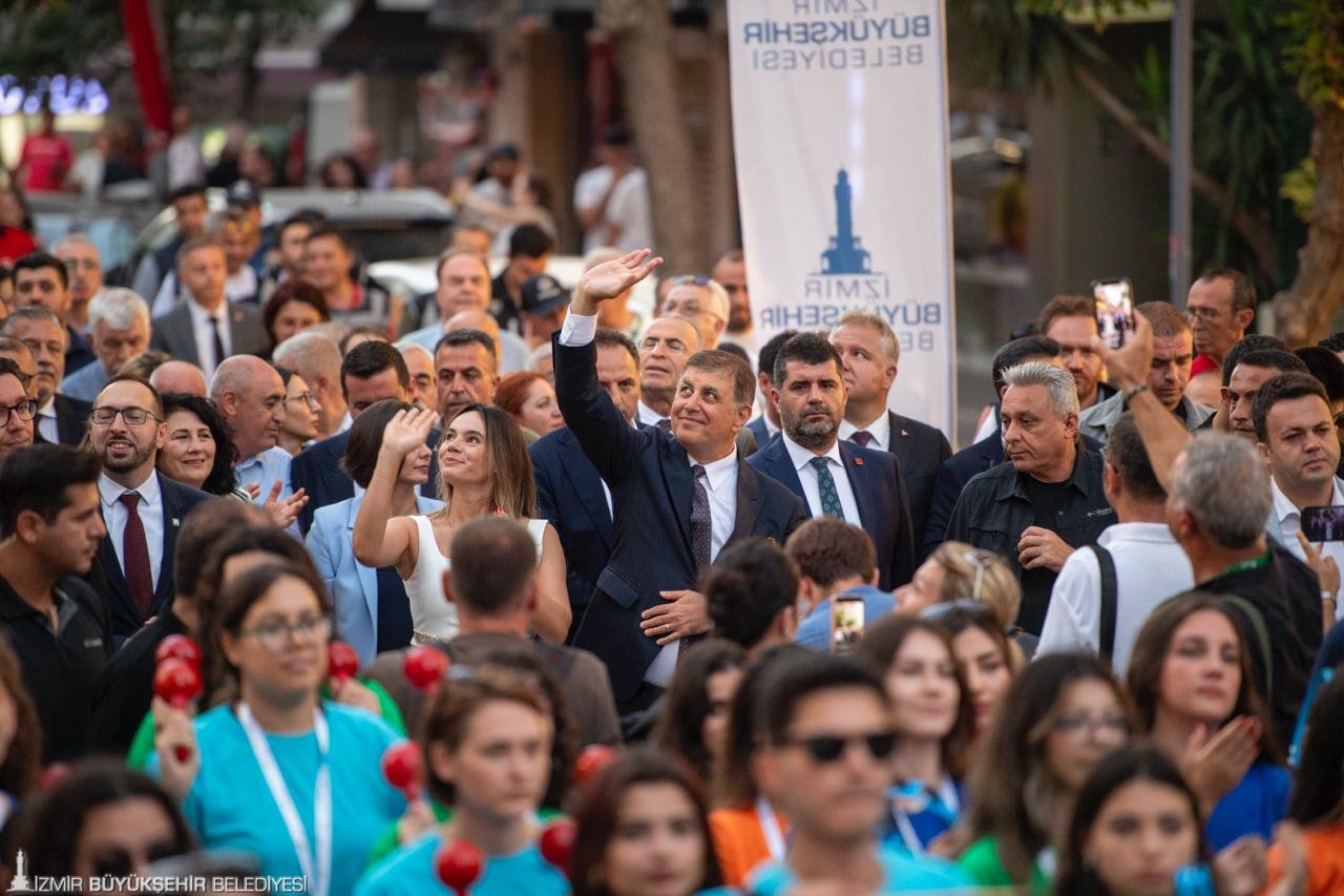 İki dev organizasyonun renkli korteji, fuar coşkusunu İzmir sokaklarına taşıdı. Gündoğdu Meydanı’ndan başlayan korteje İzmir Büyükşehir Belediye Başkanı Dr. Cemil Tugay ve eşi Öznur Tugay, Cumhuriyet Halk Partisi (CHP) İzmir İl Başkan Vekili Barış Özdemir, geçmiş dönem CHP İzmir Milletvekili Alaattin Yüksel, ilçe belediye başkanları, büyükelçiler, Arnavutluk, Bosna Hersek, Bulgaristan, Hırvatistan, Karadağ, Kosova, Kuzey Makedonya, Romanya, Sırbistan ve Yunanistan’dan gelen konuk ülkelerin temsilcileri ve dans ekipleri, İzmir Büyükşehir Belediyesi bürokratları, oda ve sivil toplum kuruluşlarının başkanları, meclis üyeleri, muhtarlar ve çok sayıda İzmirli katıldı.