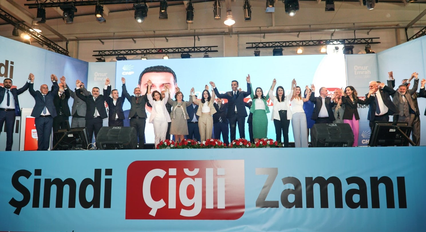 Yücel'den sonra konuşma yapan CHP Çiğli başkan adayı Onur Emrah Yıldız, “Çevresi, çehresi ve doğasıyla yeni bir Çiğli yaratacağız. Biz, sosyal demokratız, ilk sözümüz de son sözümüz de halktır. Kent Halkına karşı gelecek hiçbir projeye öncelik tanımayacağız ve toplumsal yarar bizim için ilk öncelik olacak. Kimseyi ötekileştirmeden, rozetine, mezhebine bakmadan, kimseyi geride bırakmadan, herkesin yaşamaktan mutlu olacağı ortak bir kent yaratacağız. Gazi Mustafa Kemal Atatürk’ün izinde, onun gösterdiği yoldan ayrılmadan, ona laik bir kent yaratacağız” açıklamasında bulundu.