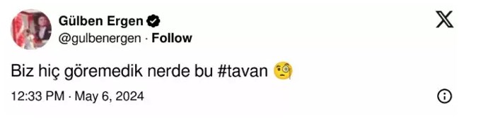'Biz hiç göremedik nerde bu #tavan' diyen Ergen'in bu yorumu sosyal medyayı salladı.