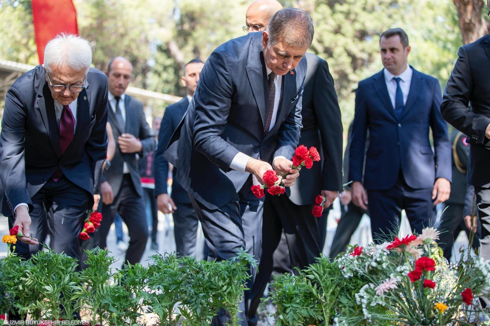 Saygı duruşunda bulunulup İstiklâl Marşı’nın okunmasıyla başlayan tören, Yeşilyurt Ulu Cami İmam Hatibi Sedat Dumlu’nun Kur’an-ı Kerim tilaveti ile devam etti. Ardından İzmir İl Müftüsü Sinan Kazancı tarafından şehitler için dua edildi. Programda İzmir Valisi Süleyman Elban şehitlik defterini imzaladı. Kent protokolü, İzmir Kadifekale Hava Şehitliği’nde bulunan şehit kabirlerine karanfiller bıraktı.