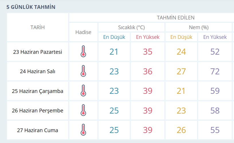 İzmir'de sıcaklıkların 36 ila 39 derece olması beklenirken, çarşamba gününden itibaren sıcaklıklar artacak.