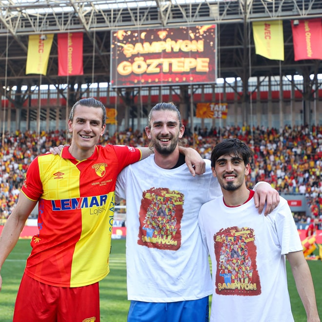 1'inci Lig'de Gençlerbirliği'ni evinde 2-0 yenerek bitime 2 maç kala resmen Süper Lig'e adını yazdıran Göztepe'de 3 oyuncu hem küme düşme üzüntüsü hem de şampiyonluk coşkusu yaşadı. Mevcut kadroda yer alan kaleci Arda Özçimen, orta saha Yalçın Kayan ve stoper Atınç Nukan, 2021-2022 sezonunda Süper Lig'de mücadele eden sarı-kırmızılılarda forma giydi. Üç oyuncu o sezon Süper Lig'e dramatik bir şekilde veda eden Göztepe'de küme düşme acısını tattı.