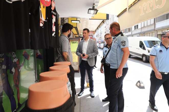 Sahada yürütülen çalışmaya katılan Zabıta Müdürü Ali Balık daha temiz, daha düzenli bir görüntünün yaratılması konusunda esnafla birebir konuştu. Yaya ve araç geçişine engel olan tüm iş yerlerini uyarmaya ve kente bir düzen getirmeye kararlı olduklarının altını çizen Balık, kent estetiğini bozan işgaliye ile mücadeleye ilçenin dört bir yanında devam edeceklerini söyledi. Balık, "Kamuya ait, vatandaşın kullanımına sunulan kaldırımları işgaliyeden temizleme konusunda kararlıyız. Zabıta denetimi bugün var yarın yok anlayışı bitti. Tüm ekiplerimizle gece gündüz denetlemeye devam edeceğiz. Uyarıda bulunduğumuz yerleri de kontrole gideceğiz. Kurallara uymayan, uyarıya direnç gösteren herkese eşit uygulama yapılacak ve kanun gereğince para cezası keseceğiz. Biz ceza kesme taraftarı değiliz ama kurallara uyulmazsa ceza kesmek zorundayız. Biz hem esnafımızın hem vatandaşımızın yanındayız" dedi.