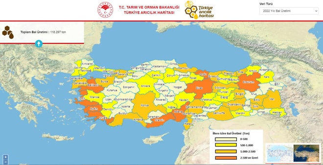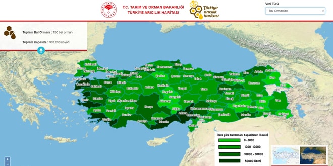 Bakanlığa bağlı Hayvancılık Genel Müdürlüğü tarafından arıcılığın geliştirilmesi ve bal üretiminin artırılması amacıyla projelendirilen ve Bilgi Teknolojileri Genel Müdürlüğü tarafından geliştirilen 'Türkiye Arıcılık Haritası' uygulaması ile internet üzerinden 'https://aricilikharitasi.tarimorman.gov.tr' arıcılıkla ilgili birçok veri ve istatistiki bilgiye ulaşılabiliyor. Türkiye geneli ve illere göre ayrı ayrı hazırlanan söz konusu harita, renk skalası ile belirtilmiş üretici sayısı, kovan sayısı, bal üretimi ve kovan başı bal verimini içeriyor. Haritada ayrıca, ülke genelinde üretimi yapılan bal çeşitleri ve bu balların illere göre dağılımı, illerde en çok üretimi yapılan bal çeşitleri, tescil edilmiş coğrafi işaretli ballar, damızlık ana arı üreten iller ve kapasiteleri, damızlık ana arıların ırk özellikleri ve tescilleri, bombus arısı üreten iller ve kapasiteleri de yer alıyor.