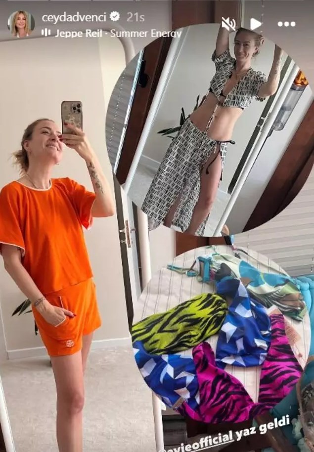 Fit halini sık sık paylaşan Ceyda Düvenci kendisine gelen plaj kıyafetlerini deneyerek ayna karşısına geçti.