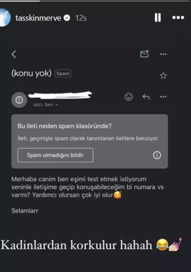 Merve Taşkın'a gelen mesajda "Merhaba canım ben eşimi test etmek istiyorum yardımcı olursan çok iyi olur" yazıyordu.