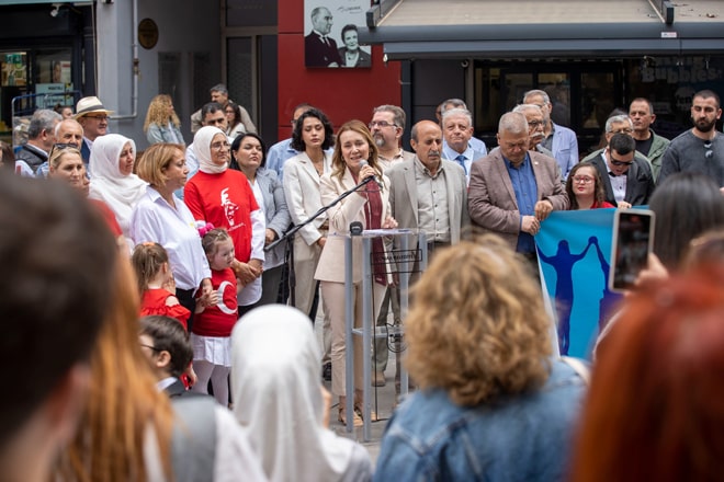 “Eşit yurttaşlar olarak yaşayacağımızı söylediğimiz Konak’ta hiç kimsenin kendini öteki ya da farklı hissetmediği bir hayatı biçimlendirmeye çalışıyoruz. Bugün de farkında olmak istiyoruz. Engelliler aramızda, engellilerimiz var. Onların bu yaşamın, bu kentin her olanağından eşit şekilde yararlanmasını sağlamak için buradayız. Sokağa rahatça çıkabildikleri, kendilerini dışlanmadan, mutlu hissedebildikleri; kentin bütün etkinliklerden, iş hayatından, sosyal hayatından adil ve eşit yararlanabildikleri bir kent özlemiyle yola çıktık. Bu bir farkındalık günü. Zaten buradaki dostlarımız farkında ama bu farkındalığı bütün Konak’a, bütün İzmir’e yaymak için etkinliklerimizin gücünü, sesini büyütmek, artırmak daha fazla duyurmak için hepimize çok görev düşüyor. Bugünü böyle bir görevi almış olarak kabul edelim istiyorum.”