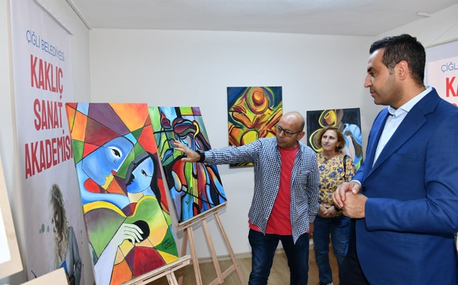 Çiğli Belediyesi Kaklıç Sanat Akademisi'nde altı aydır devam eden yağlı boya ve kara kalem kursları gerçekleşen yıl sonu resim sergisi ile sona erdi. 30 kursiyerin eserlerinin yer aldığı sergide 23 yağlı boya ve 7 kara kalem çalışması etkinliğe katılanların beğenisine sunuldu. Sergiye Cumhuriyet Halk Partisi Çiğli İlçe Başkanı Erkan Akar, belediye meclis üyeleri, muhtarlar ve çok sayıda sanatsever katıldı. Kursiyerler sertifikalarını Başkan Yıldız'ın elinden aldı.
