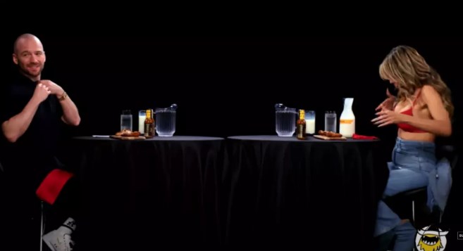 Programda Klum ve Evans kanatlarını ısırdıktan sonra, Klum damak tadını sakinleştirmek için birkaç yudum ayran içmek zorunda kaldı ve "Ateşleniyorum" dedi.