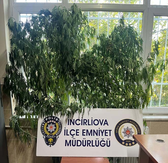İncirliova İlçe Emniyet Müdürlüğü ekipleri Kurtuluş Mahallesi'nde bir şüphelinin evinin bahçesinde Hint keneviri yetiştirdiği ihbarı sonrası çalışma başlattı. İlk olarak adresi dron ile denetleyen ve bahçeye ekili Hint kenevirini tespit eden ekipler, dün akşam saatlerinde eve operasyon düzenledi.