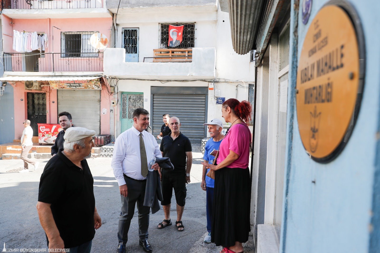 Yaklaşık 2.5 saat süren turda Fettah Camii, Kumrulu Mescit, Abdullah Efendi Camii, Bayraktar Camii gibi eski yapılarla ilgili Beşikçi’den bilgi alan Tugay, eski İzmir evi olarak adlandırılan büyük bahçeli bir evi de inceledi. Basmane’deki tarihi çeşmelerin onarılarak kentlilerin hizmetine yeniden açılması hakkında Beşikçi ile görüş alışverişinde bulunan Başkan Tugay, İzmir Büyükşehir Belediyesi tarafından restore edilen Carfi Konağı’nı ve Sakin Mekân Agora’yı da ziyaret ederek bilgi aldı.