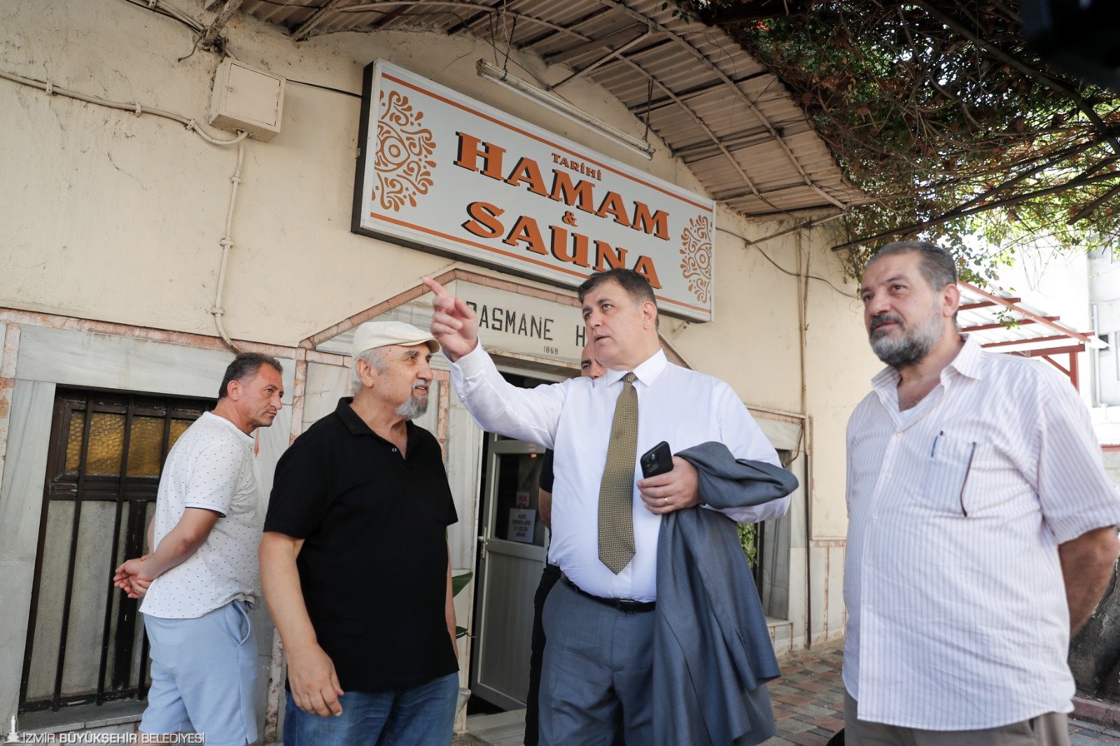 İzmir Büyükşehir Belediye Başkanı Dr. Cemil Tugay, kentin önemli tarihi aksları içinde bulunan Basmane’de incelemelerde bulundu. Basmane girişinde bulunan Çorakkapı Camii’nden hareket ederek Konak –Kadifekale aksında İzmir Büyükşehir Belediyesi tarafından yapılan çalışmaları, Oteller Sokağı’nı, eski İzmir evlerini, tarihe ışık tutan yapıları, İzmir’de doğup büyümüş ünlü isimlerin evlerini gezen Başkan Tugay’a, Basmane’nin tarihi üzerine çok sayıda yazısı ve kitabı bulunan araştırmacı-yazar Orhan Beşikçi eşlik etti. Basmane’de yaşayan yurttaşlar ve Tarihi Basmane Hamamı bölgesindeki esnafla da sohbet eden Başkan Tugay, yürütecekleri çalışmalarla bölgeyi ayağa kaldıracaklarını söyledi.