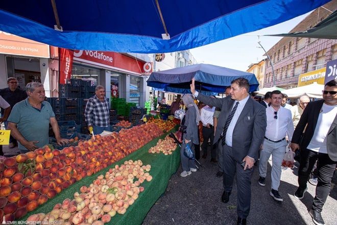 Başkan Tugay ve Tire Belediye Başkanı Okuroğlu ile beraberindeki heyet, Türkiye'nin en büyük açık hava pazarı olarak adlandırılan ve ilçe merkezinde bulunan Tire Salı Pazarını da ziyaret etti. Yaklaşık 1800 tezgâhıyla her salı günü Tire’nin merkezindeki tüm sokakları kaplayan, yöreye özgü ot ve sebze çeşitlerinin yanı sıra el emeği işlemeler ve Tire’nin geleneksel el sanatlarına ait nadide örneklerin olduğu Tire Salı Pazarı turunda esnafla sohbet eden Başkan Tugay, üreticilere bereketli işler diledi. Esnaftan alışveriş de yapan Tugay, Tire'de doktorluk yaptığı dönemdeki çalışma arkadaşlarıyla da karşılaştı. Başkan Cemil Tugay, turunun ardından Ihlamur Meydanı'nda vatandaşlarla sohbet ederek taleplerini dinledi.