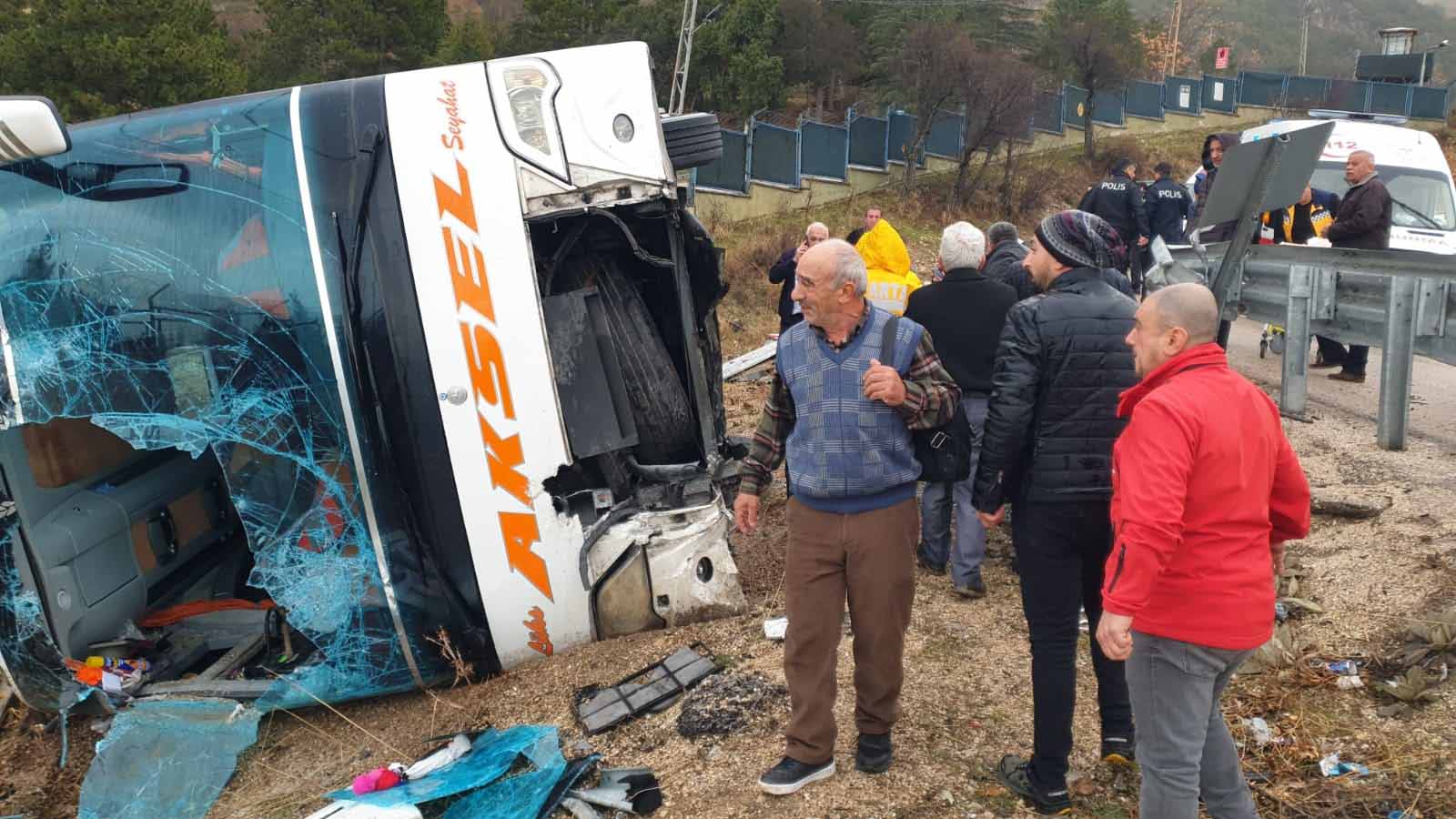 Isparta- Eğirdir yolunun Miskinler yokuşu mevkisinde, saat 12.30 sıralarında sürücüsünün virajda kontrolünü yitirdiği yolcu otobüsü tarlaya girip, yan yattı. Kazanın ardından çok sayıda sağlık, jandarma, polis, itfaiye ve AFAD ekibi olay yerine sevk edildi. 2'si personel, 25 kişinin bulunduğu otobüsteki yaralıların kurtarılması için çalışma başlatıldı. Otobüste sıkışan 1 kişinin hayatını kaybettiği belirlenirken, 24 yaralıya olay yerinde ilk müdahalesi yapıldı. 24 yaralı, ambulanslarla Eğirdir ve Isparta'daki hastanelere sevk edilerek tedaviye alındı. Yaralılardan 1'inin durumunun ağır olduğu öğrenildi.